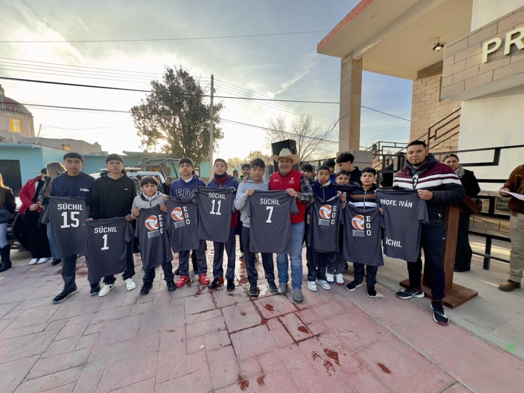 El Presidente Municipal, C. Benjamín Páez Pérez, en compañía del H. Cabildo, realizó la entrega de camisetas y apoyo para el transporte al equipo de voleibol “Águilas EGO Súchil”, de la Escuela Secundaria General “Everardo Gámiz Olivas”, quienes están participaron en la Olimpiada Nacional 2026, etapa estatal, realizada en la ciudad de Durango.